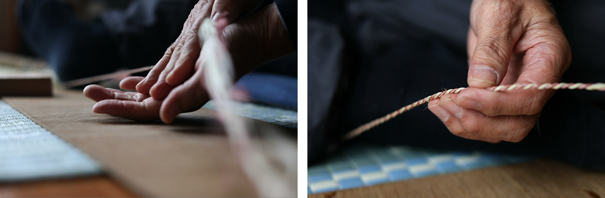 Before modern times, such as in the Edo period, common people started to wear cotton garments, but in areas such as the Tohoku region where cotton was scarce, breathable cloth made from hemp and ramie plants were often used to make work wear. Fibers of different lengths were twisted by hand, and as a result many of the fabrics made using this method have uneven surfaces. On the other hand, with modern techniques the fibers are all cut short and evenly, making he thickness of the yarn even throughout. These contrasting techniques naturally yield different textures in the finished fabrics. Modern day machine made yarn is more flat in texture and smooth, while yarn made by hand using traditional methods have a rougher uneven surface where the appearance has more depth and character. There is specific appeal that comes from the unevenness of traditional fabrics, and we intentionally have incorporated random blends of fabrics with different lengths such as weaving hemp for the warp yarns and cotton for the weft yarns amongst other blends in attempt to bring a more unique feel to modern products.
