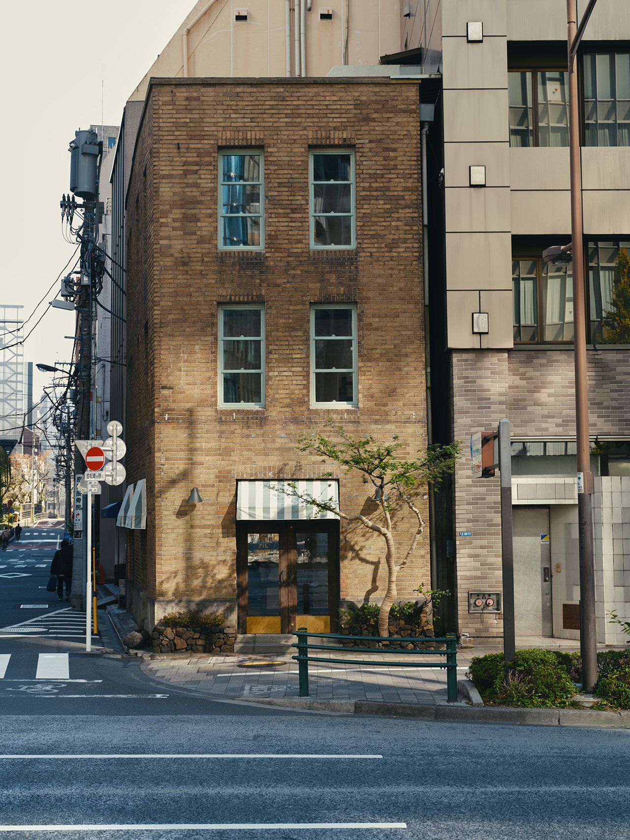 2023年10月、銀座一丁目にオープンした新しい〈F.I.L.〉のショップは、昭和通り沿いにある1932年竣工の3階建てのビルをリノベーションしたものです。高層ビルが建ち並ぶ大通りに一軒だけ残った小さな近代建築で、黄土色の加飾タイルの外壁が印象的でチャーミング。元々この建物は油屋さんだったらしいのですが、約90年の間に変遷を経て随所が変更されていたので、店舗にするにあたり、できるだけオリジナルの姿を取り入れる形で改装することにしました。