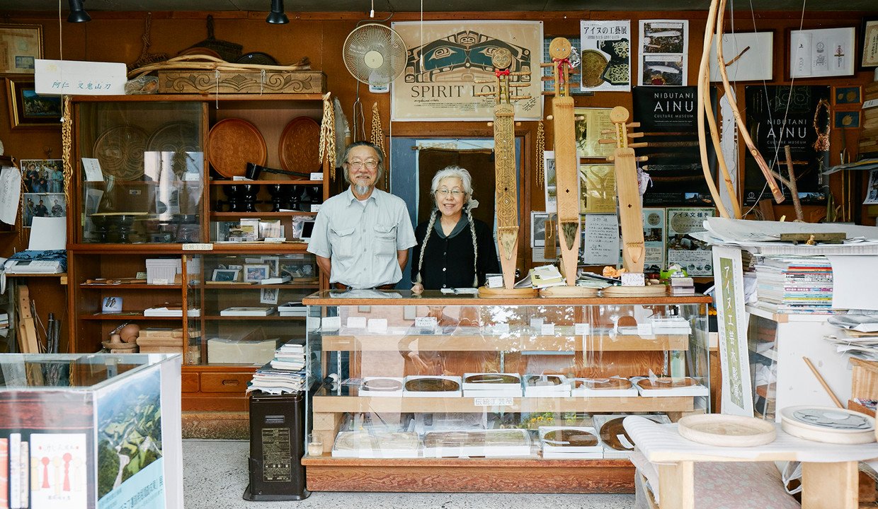 高野さんは、観光客向けの土産用に作られた大量生産の木彫の熊ばかりが売られ、アイヌの人々がかつて日常的に使用してきた生活工芸がほとんど顧みられなくなった時代に、あえて伝統民具の店を掲げ、そのポリシーを貫いてきた。