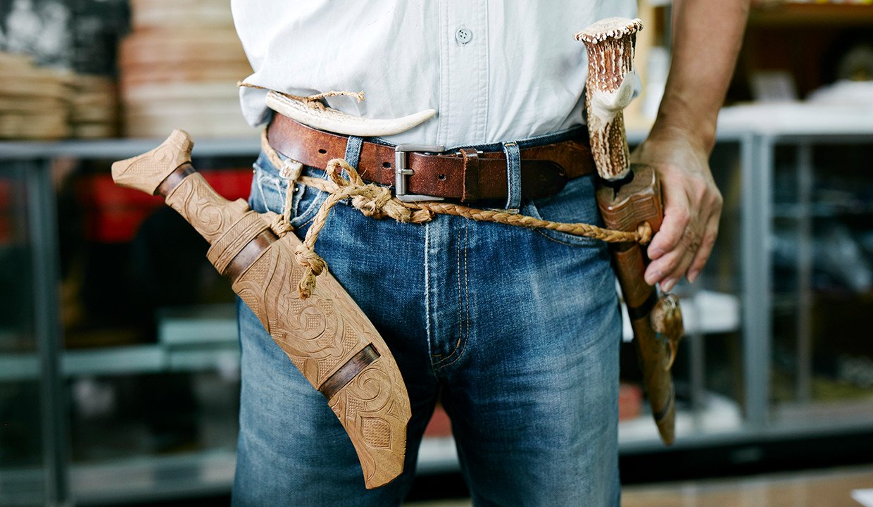 北海道沙流郡平取町・二風谷で「高野民芸」を営む高野繁廣さんはこの地域では唯一、トンコリを制作する技術を持つ木彫師。東京育ちでアイヌではない高野さんは1972年、22歳の夏に放浪の旅に出て、ヒッチハイクで二風谷へやってきた。アイヌの美しい木彫の工芸に惹かれて、アルバイトとして名工・貝澤守幸の元で働き始めたことからアイヌ文化の魅力に目覚め、本格的な修行の道に入った。数年後に師は亡くなってしまうが、79年に独立。妻の啓子さんと二人で35年以上にわたり伝統民具を作り続けてきた。