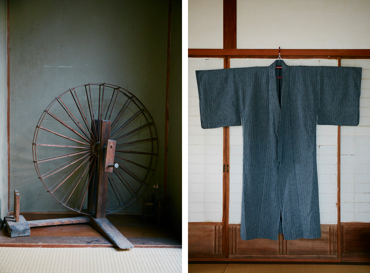 山口県東部、室津半島のつけ根に位置する柳井の街は、江戸時代以前から「柳井津」と呼ばれ、海上交通の要となる瀬戸内屈指の商港として栄えてきた。この地では江戸初期には木綿の生産が盛んになり、木綿商人が織り手の職人に原料の素材と手間賃を渡した後に製品と引き換える「綿替」という手法により発達。宝暦10年(1760)から岩国藩が始めた織物の検印制度により、高い品質が保証された柳井木綿は、街の中心を流れる柳井川を通って他藩へ送られた。万延元年(1860)には本藍で染めた木綿縞が製造されるようになり、野良着などに適した堅牢な織物は「柳井縞」として全国にその名を馳せるようになった。