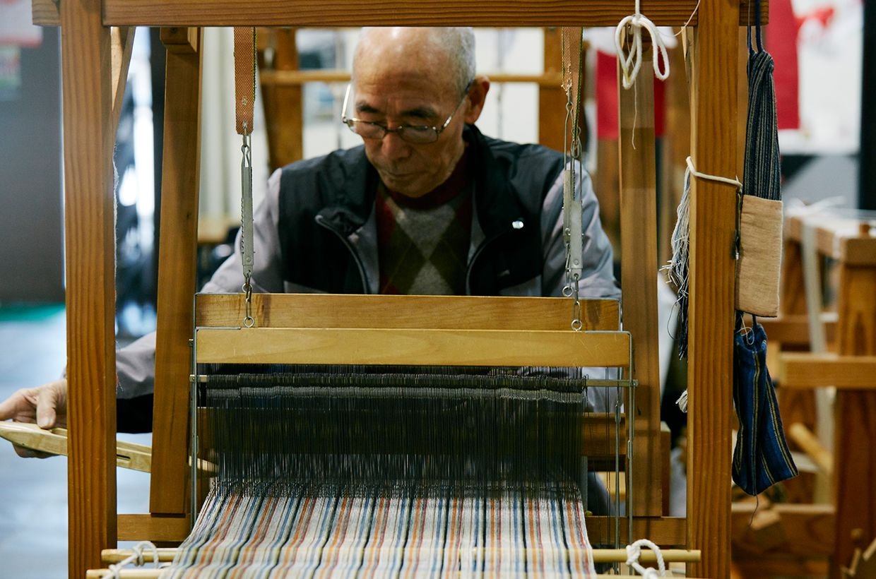 とはいえ、一度は完全に失われた文化を再興させることは容易ではない。その運動の初期から復興・保存に尽力してきた「柳井縞の会」会長・石田忠雄氏は、壊れていた織機を修復し、四国や広島など各地に足を運んで機織りの技法を学んだ。