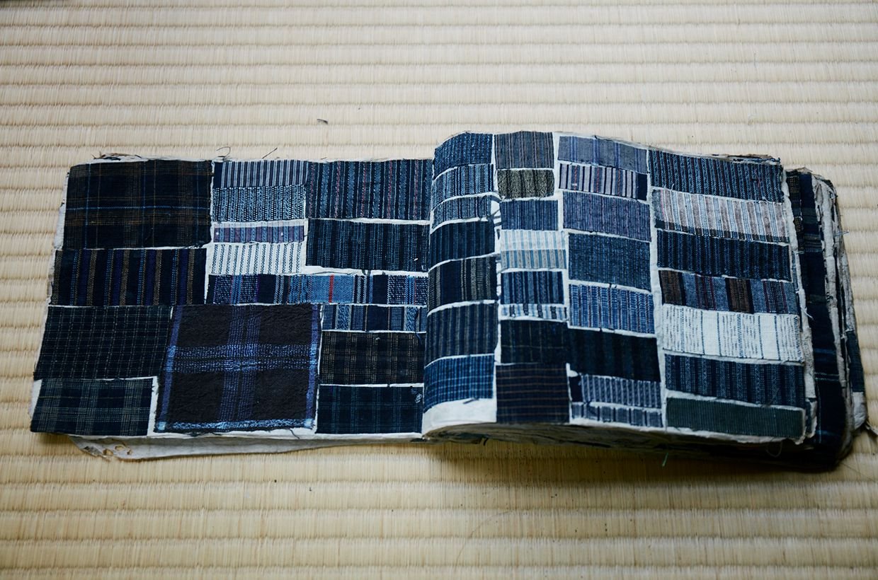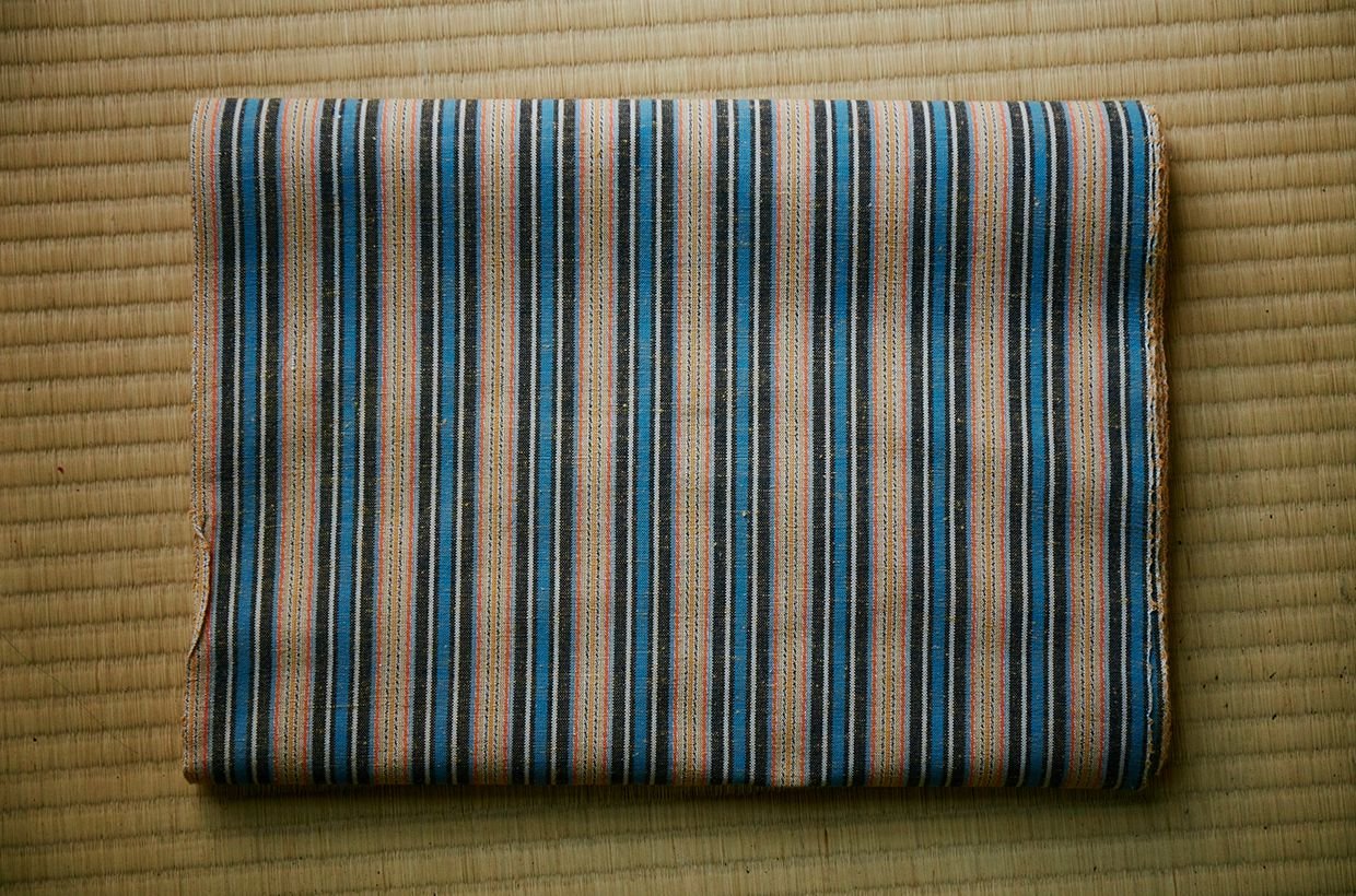 「実は当時あれほど盛んに織られた柳井縞の着物の現物が、すでに残っていないんです。高級品の織物と違い、普段着として着られたものだから、簡単に捨てられてしまうんですね。今も残っているのは、最盛期の明治ごろに使われた縞手本(生地の見本帳)だけですが、それらを見ると、タテ、ヨコとも双子糸(2本の単糸を撚り合わせた糸)を使用したものが多く、実に多種多様な縞柄があったことがわかります」