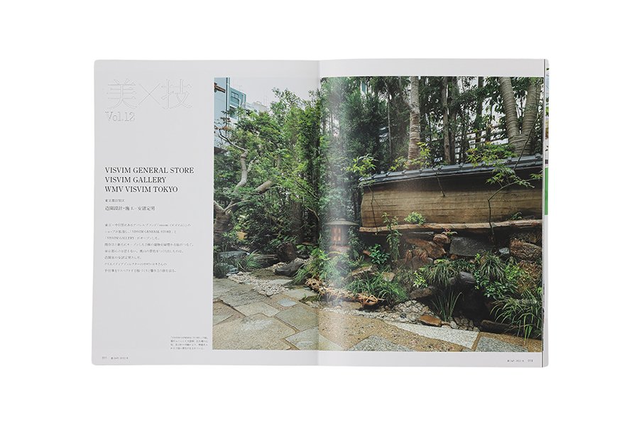 創刊40年を超える造園の専門誌である「庭 NIWA」。最新号NO.249にて、今年7月にOPENした「VISVIM GENERAL STORE」 /「 VISVIM GALLERY」の庭を取り上げていただきました。完成した庭のディテールを解説するとともに、庭を手掛けた作庭師・安諸定男氏と中村ヒロキが庭づくりについて語ったインタビュー記事が収録されています。是非ご覧ください。